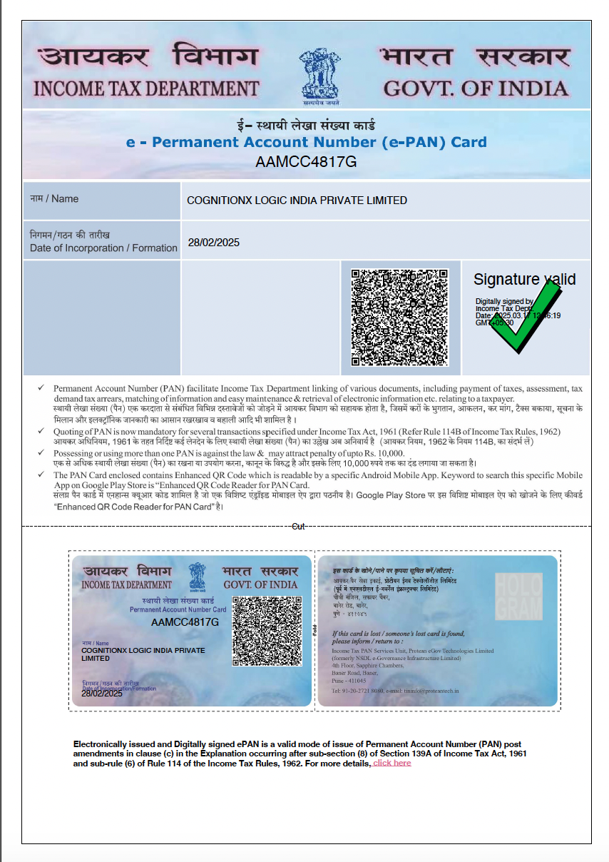 Company PAN Card (AAMCC4817G) for tax identification and compliance purposes.